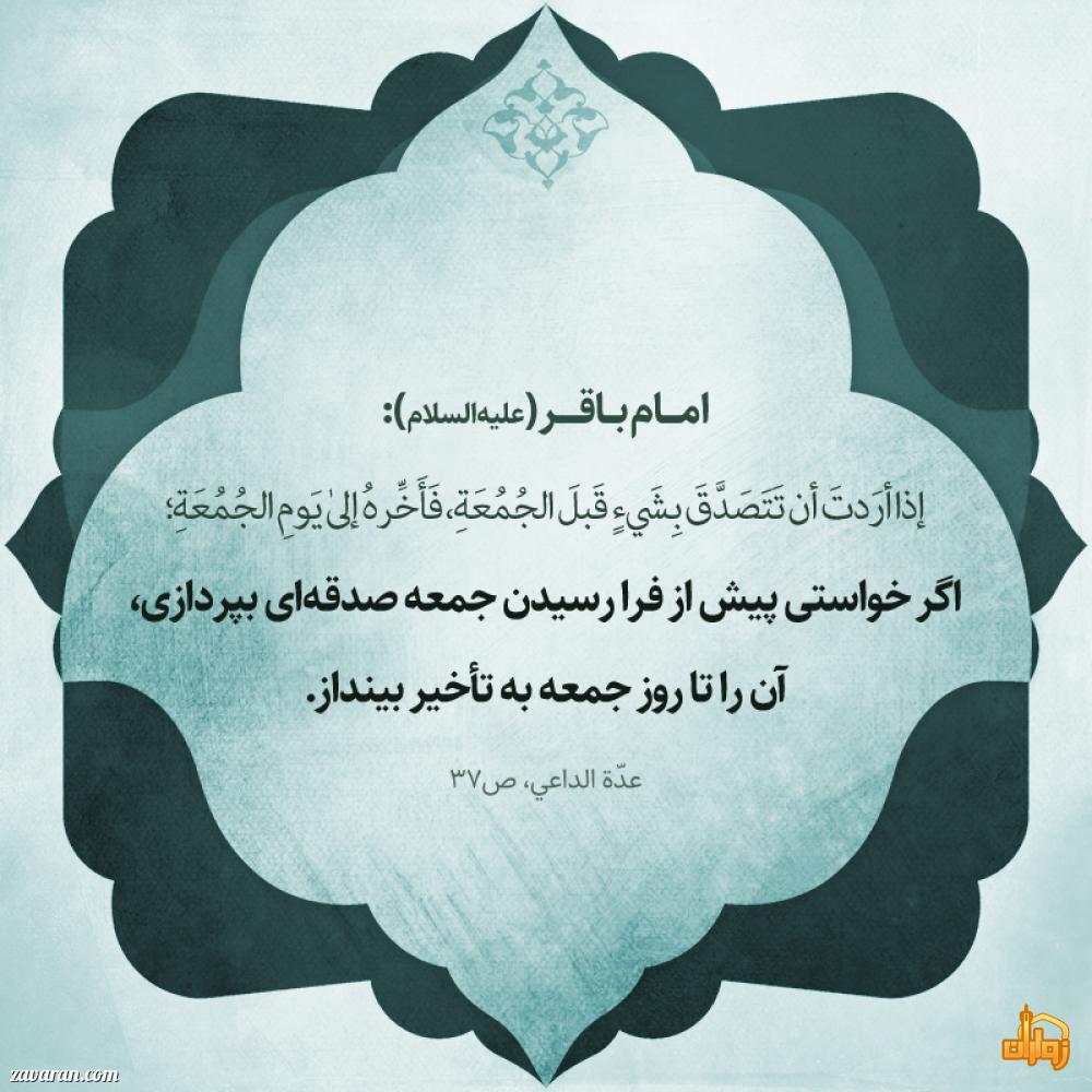"هر روز که به صبح میآورید، بر هر یک از شما واجب است که صدقهای دهد؛ زیرا این صدقه به عنوان سپر و حامی در برابر بلاها و مشکلات عمل میکند."