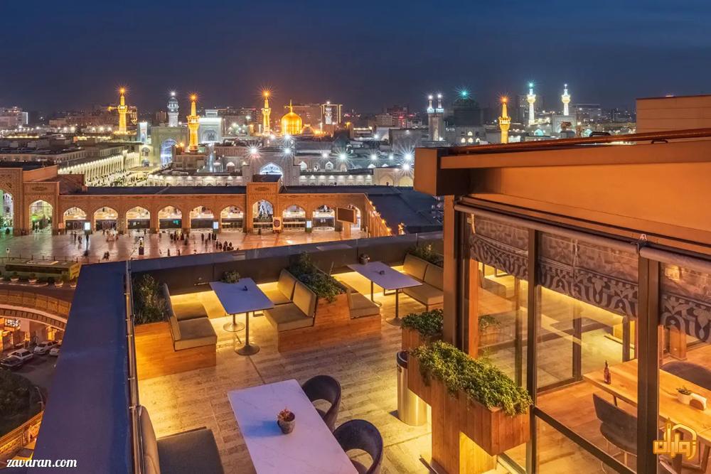 •    ویژگی منحصربه‌فرد: موقعیت مکانی استثنایی! شما می‌توانید پس از زیارت، تنها با چند قدم پیاده‌روی به ضیافتی شاهانه برسید. بسیاری از میزهای رستوران، چشم‌انداز مستقیمی به صحن و سرای حرم دارند که حس آرامش معنوی را در حین صرف غذا دوچندان می‌کند.