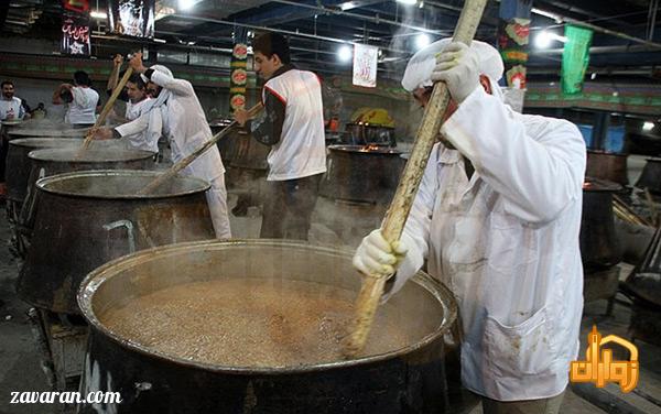 پذیرایی از عزاداران ماه های محرم و صفر با شله مشهدی در مشهد