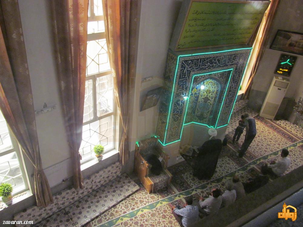 فضای داخلی گنبد سبز شامل چهار قسمت شاه نشین می باشد و امتداد هر کدام از آنها به درگاه هایی منتهی می شود. در زیر گنبد این بنا نیز ، کتیبه ای با مضمون صلوات کبیره و حدیثی از پیامبر اکرم (ص) دیده می شود که در پایان آن، نام نویسنده این سطرها «نمقفه حسین بن محمد المشهدی» و تاریخ ۱۰۵۸ هجری قمری قید شده است. بر روى گور داخل بنا نیز لوحى سنگى وجود دارد كه هر چند شكسته اما اين بيت در آن قابل قرائت است: